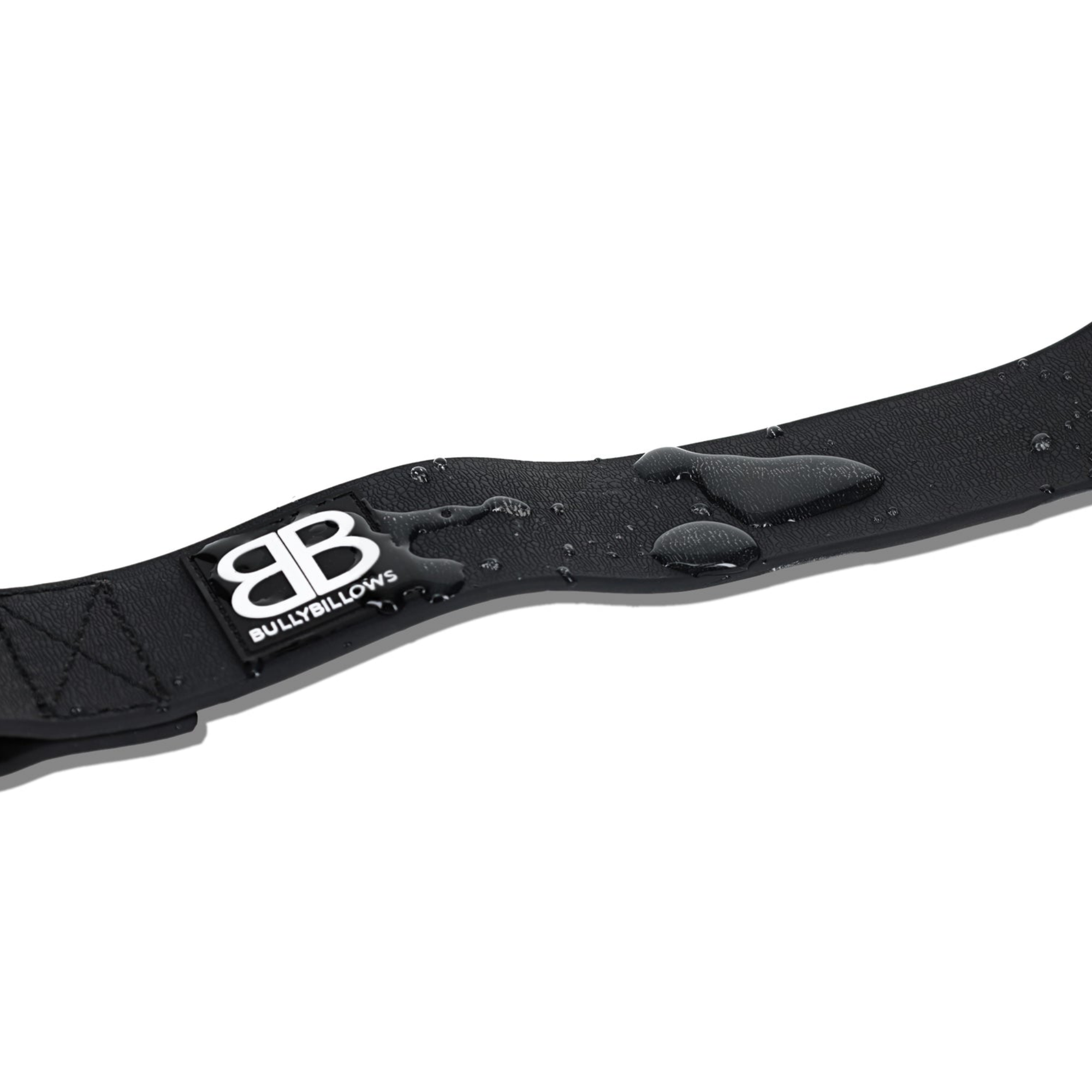 Серия амуниции Billowthane от BullyBillows изготовлена из фирменного материала, который обладает всеми свойствами и функциональностью кожи, но не впитывает влагу и отталкивает грязь. Гладкую поверхность можно протирать влажной салфеткой или просто промыть водой. Ошейники устойчивы к разрыву и эластичны, не натирают нежную кожу питомцев.